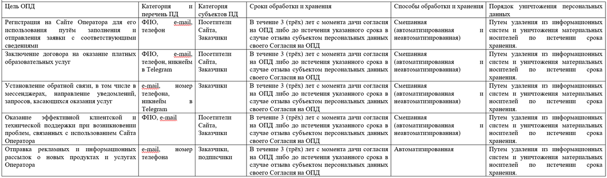 1.5. К обрабатываемым персональным данным Субъектов персональных данных, в соответствии с настоящей Политикой, относятся персональные данные заказчиков, заполнивших заявку на сайте Оператора (далее – «Сведения»): ФИО, e-mail, номер телефона, никнейм (логин) в мессенджере Telegram.